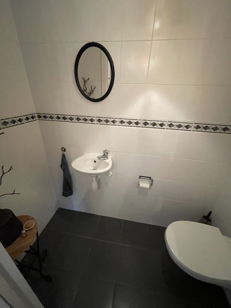 Bij deze mooie uitdaging hebben we de toiletruimte bij de badkamer getrokken en een loos stuk gang gebruikt om het nieuwe toilet te realiseren.
